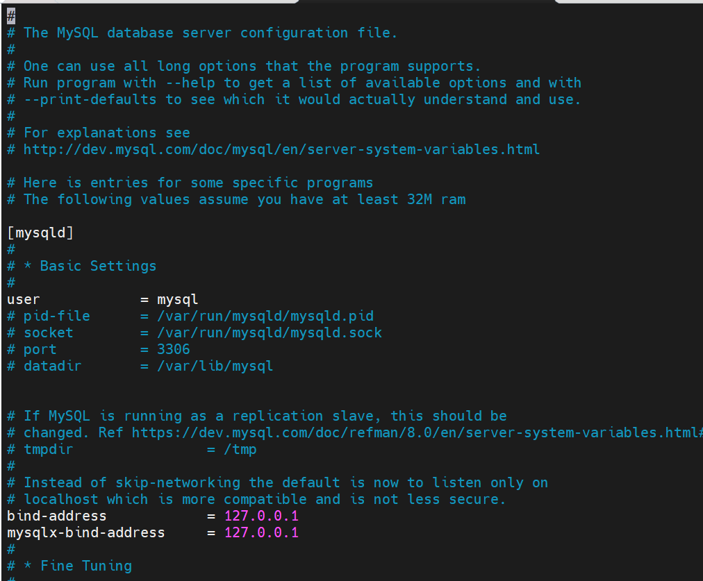 sudo vi /etc/mysql/mysql.conf.d/mysqld.cnf