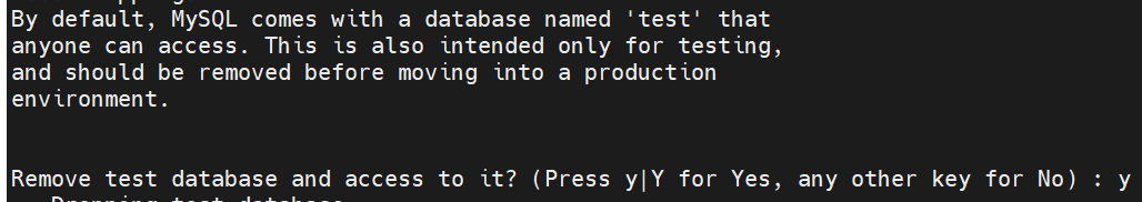 Remove test database and access to it? (Press y|Y for Yes, any other key for No) : y
