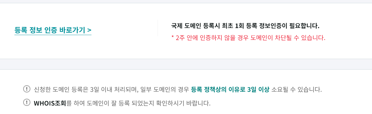 - 구매 후 "등록 정보 인증 바로가기" 링크를 통해 정보 인증을 하도록 한다.