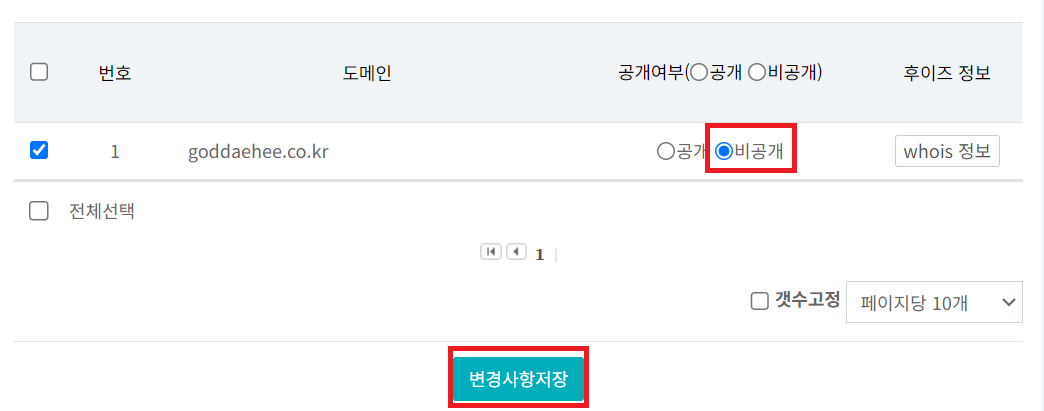 - "비공개" 버튼 클릭 > "변경사항 저장"을 눌러 적용 시켜 준다.