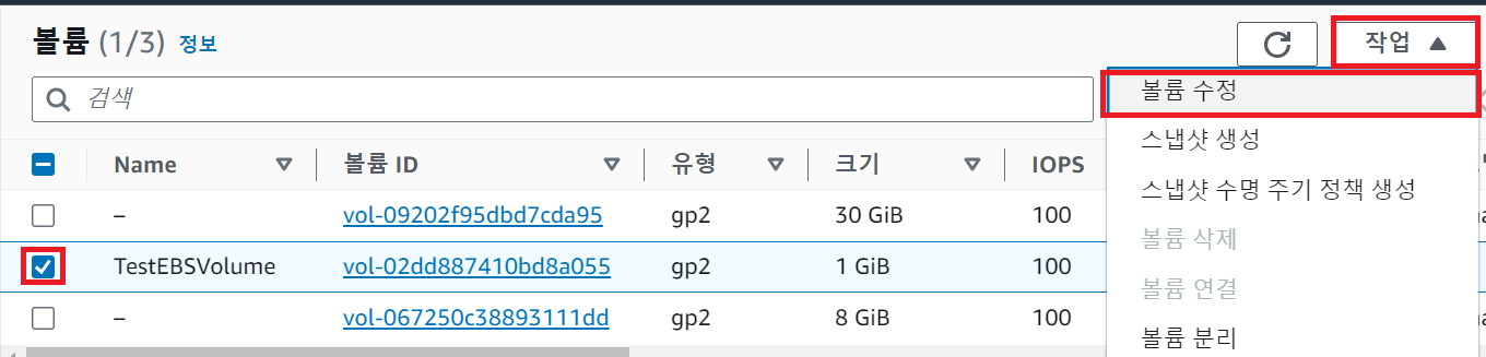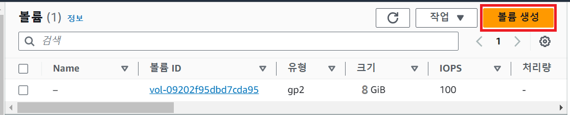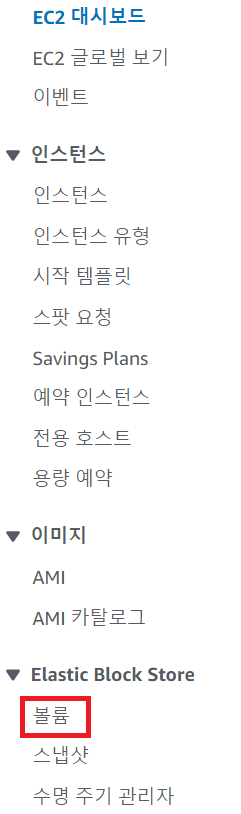 - EC2 대시보드로 이동 > "Elastic Block Store" > "볼륨" 클릭