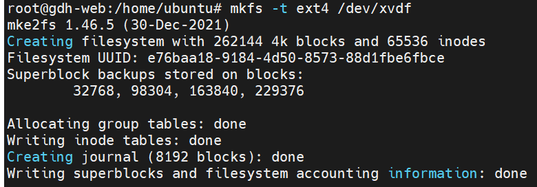 - 나의 경우 EX4 볼륨 유형이었기 때문에 다음 명령어를 입력 한다.