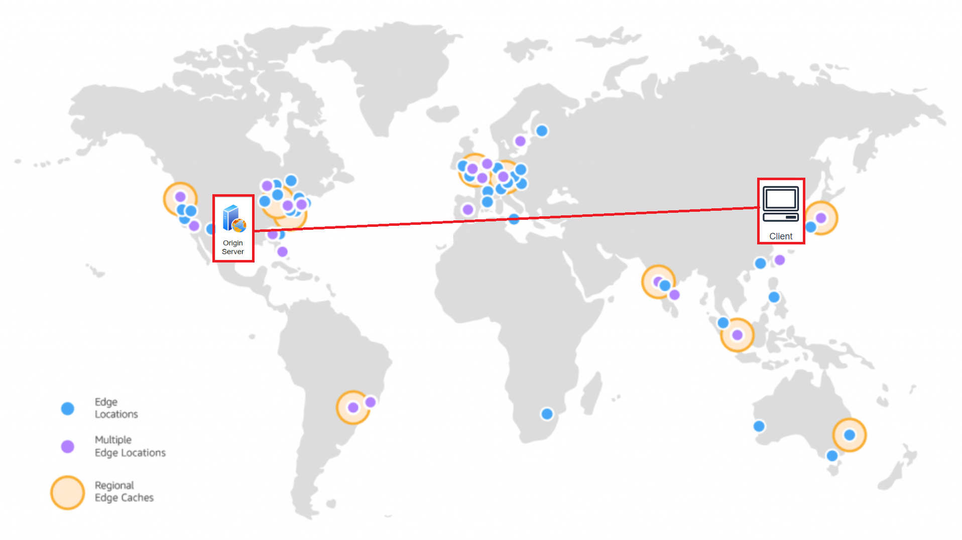 ex) 요청한 사용자 컴퓨터(Client)의 위치가 대한민국이고, 원본 서버(OriginServer)가 미국에 위치 해있다고 가정해보자.
