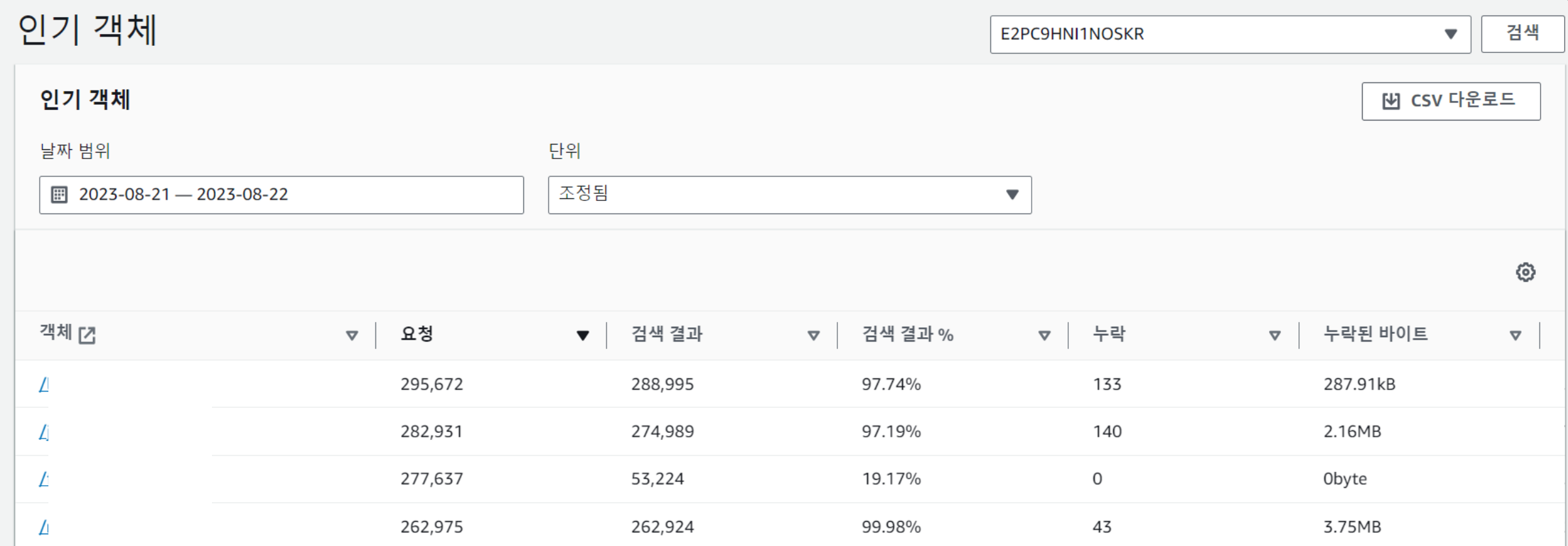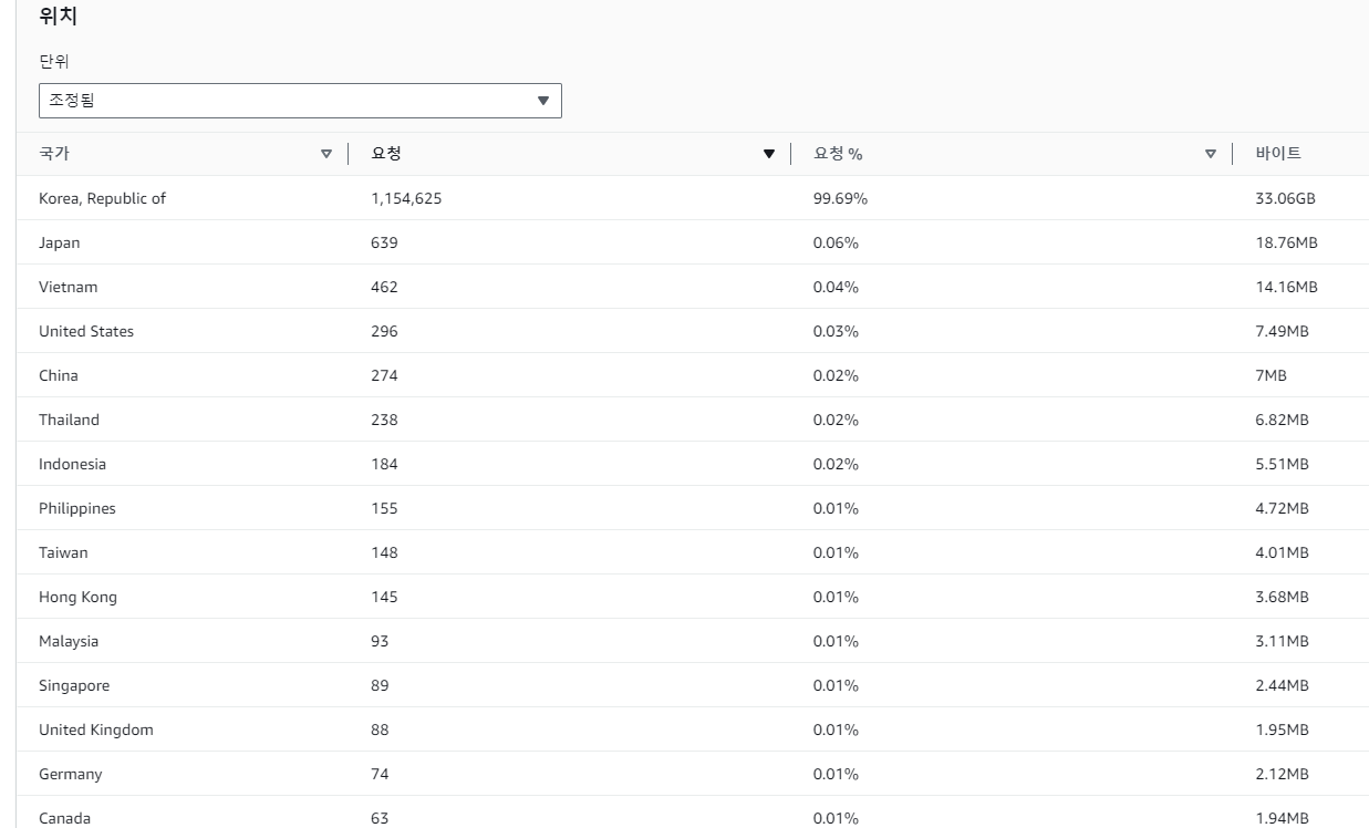- CloudFront 대시보드에서는 다음과 같은 통계 정보를 제공해 준다.