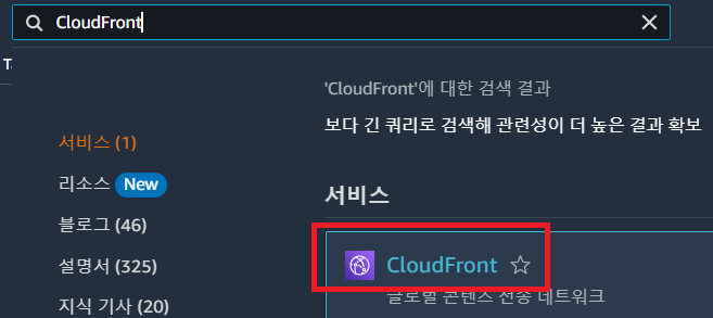 - 위의 작업이 완료 되었다면 CloudFront를 검색하여 관리 콘솔로 이동 하자.