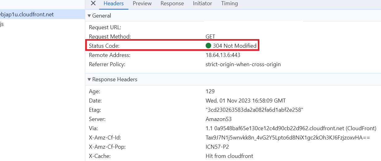 - 한번 더 새로 고침 해보자. Status 304(Not Modified)가 떨어지는것을 볼 수 있다.
