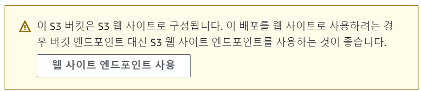 - S3를 웹 사이트로 사용 하려고 하니 "웹 사이트 엔드포인트 사용" 클릭.