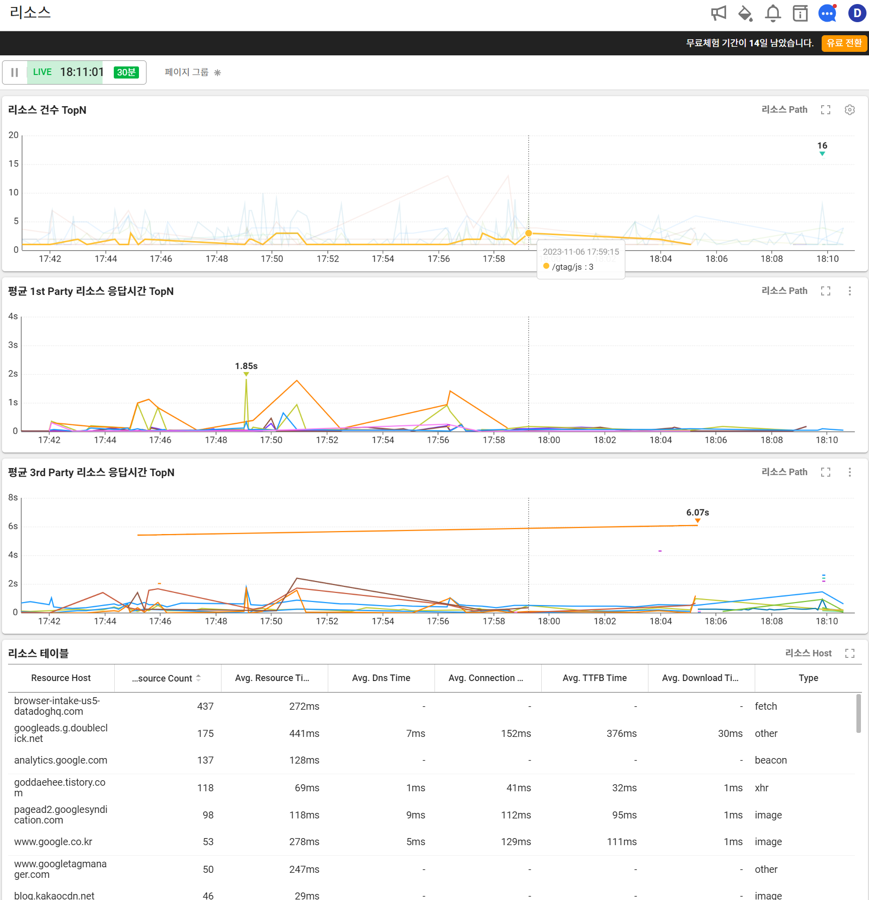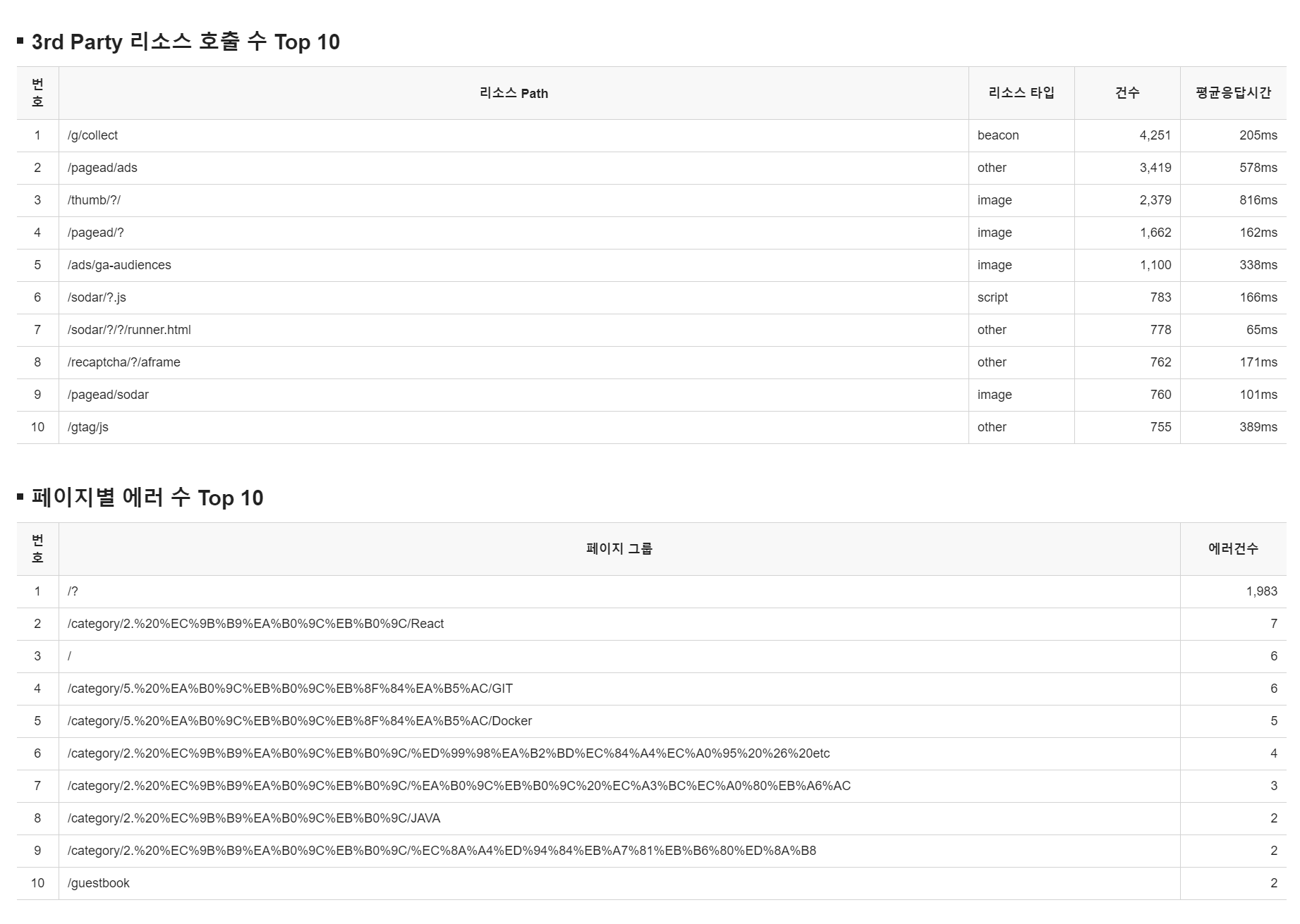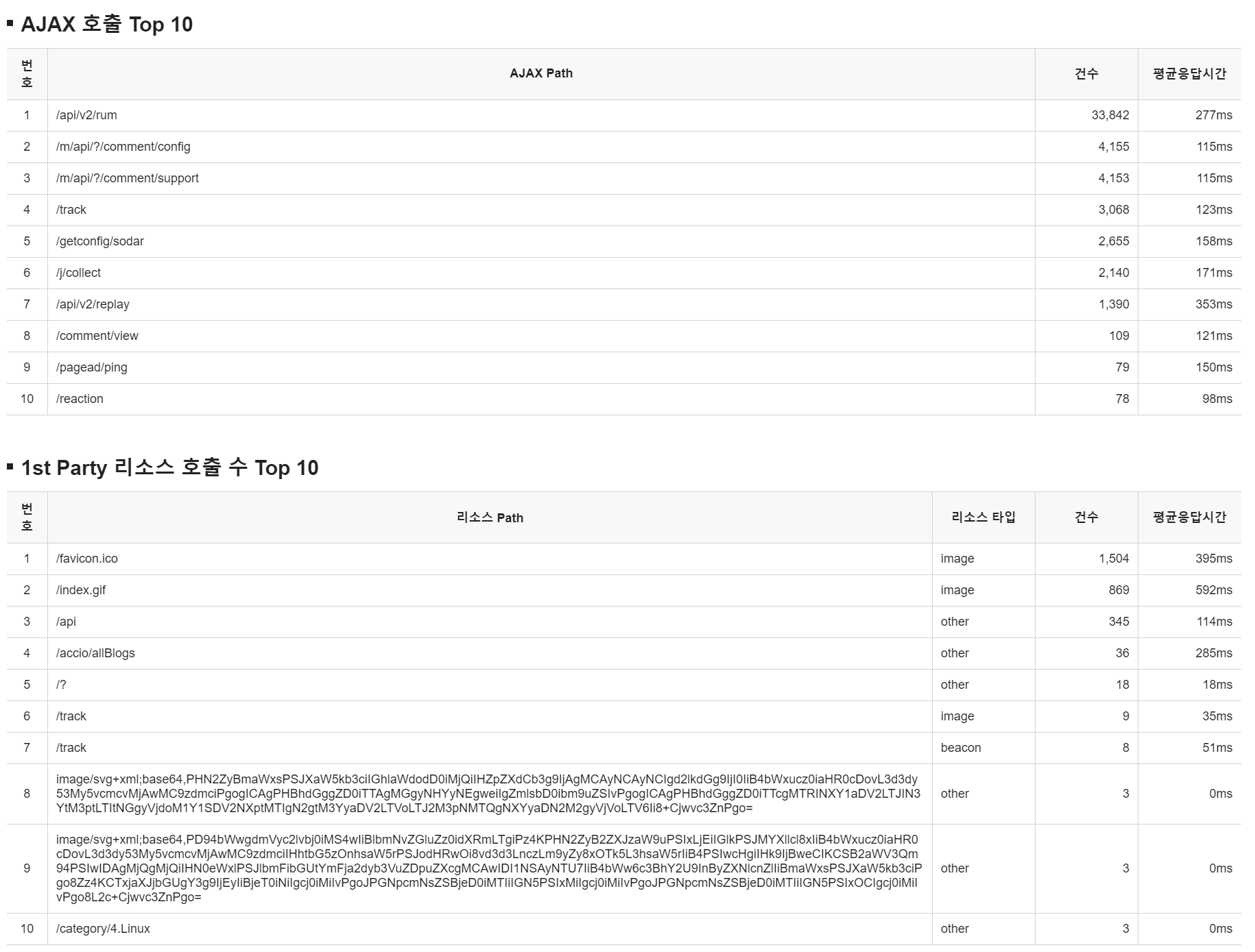 - 리소스 호출이 많은, 1st or 3st Party 리소스의 Top 그래프를 보여준다.