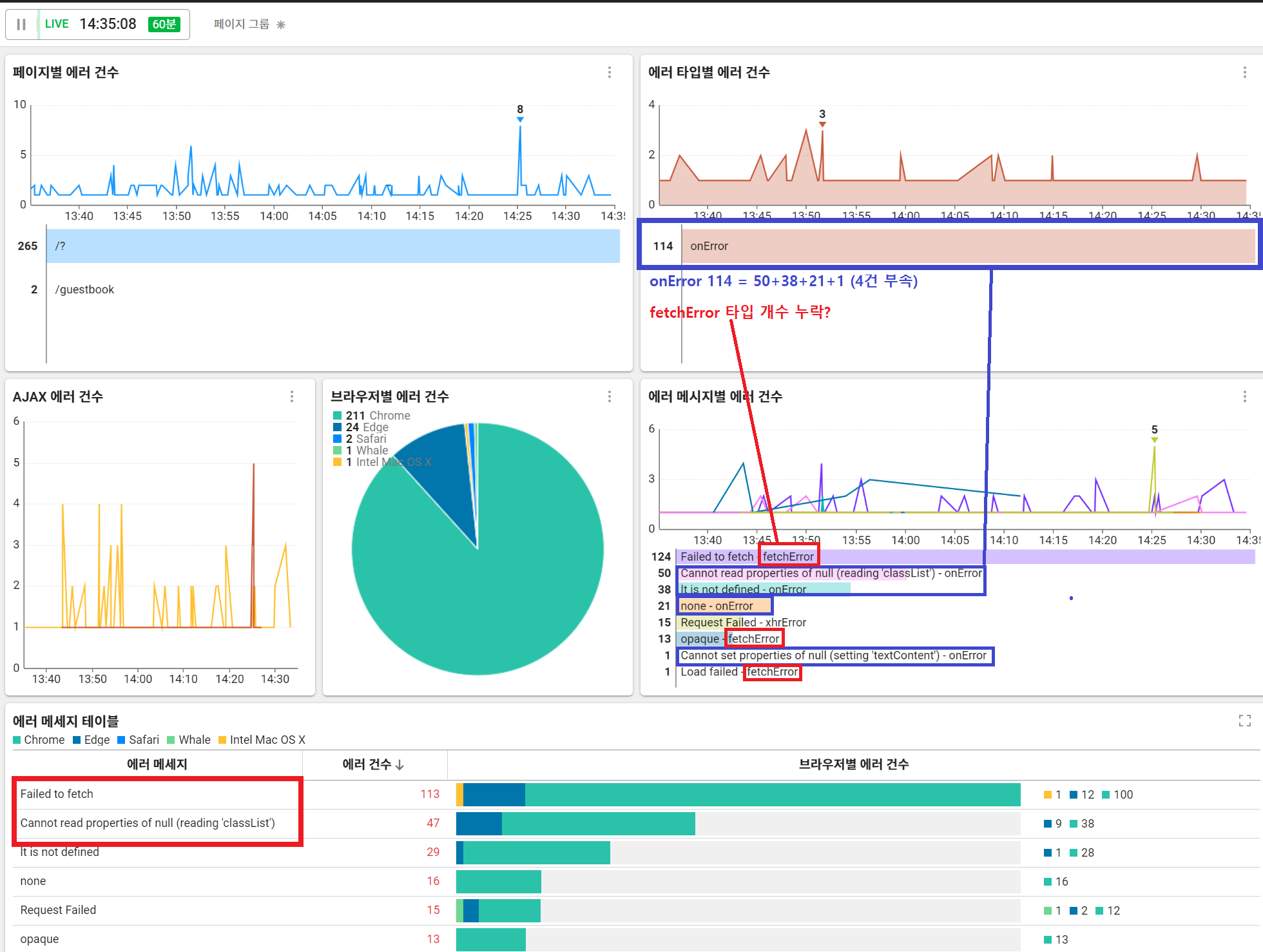 ex) onError의 갯수는 표현되지만, fetchError, xhrErorr Type의 갯수는 표현 되지 않는다.