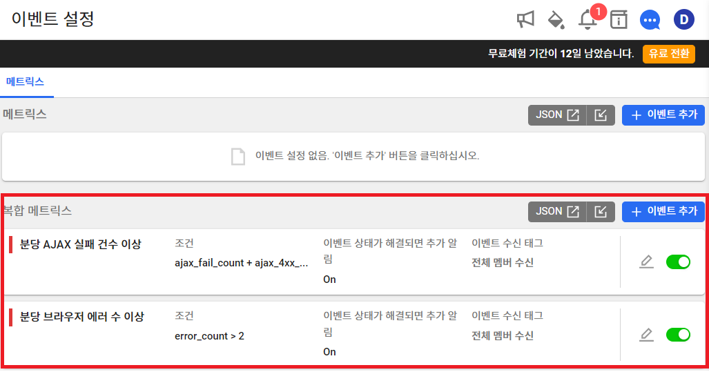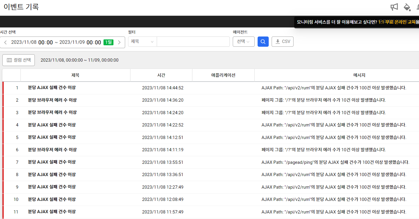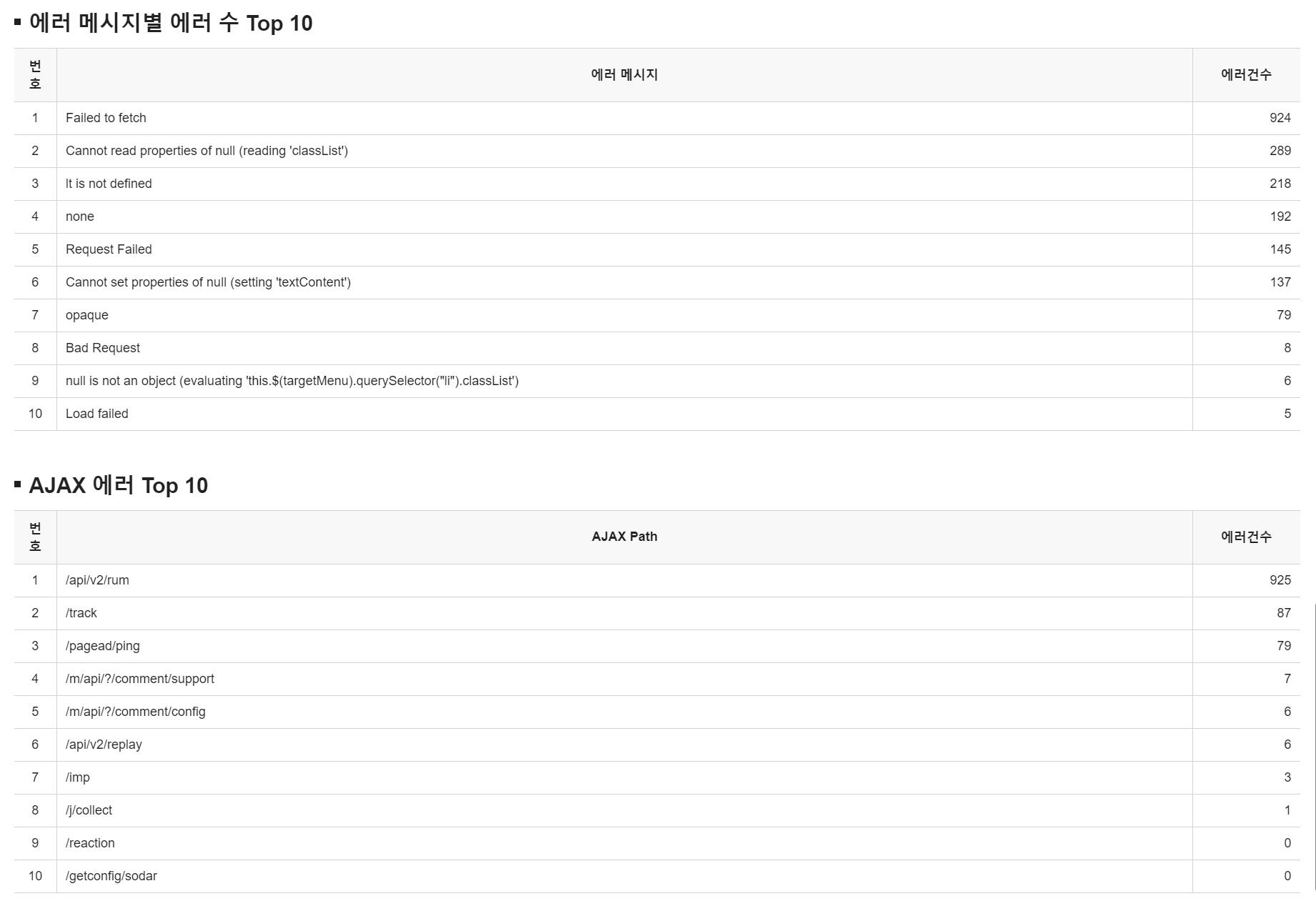 - 분당 AJAX or 브라우저 에러 수 기준으로 설정 해보았다.