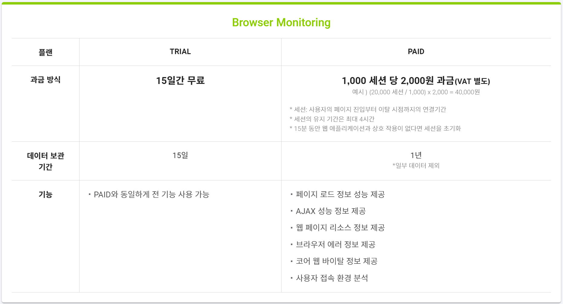 └ 1,000 세션 당 2,000원 으로 안내 되고 있다. ( DataDog이랑 비슷한 과금 방식)