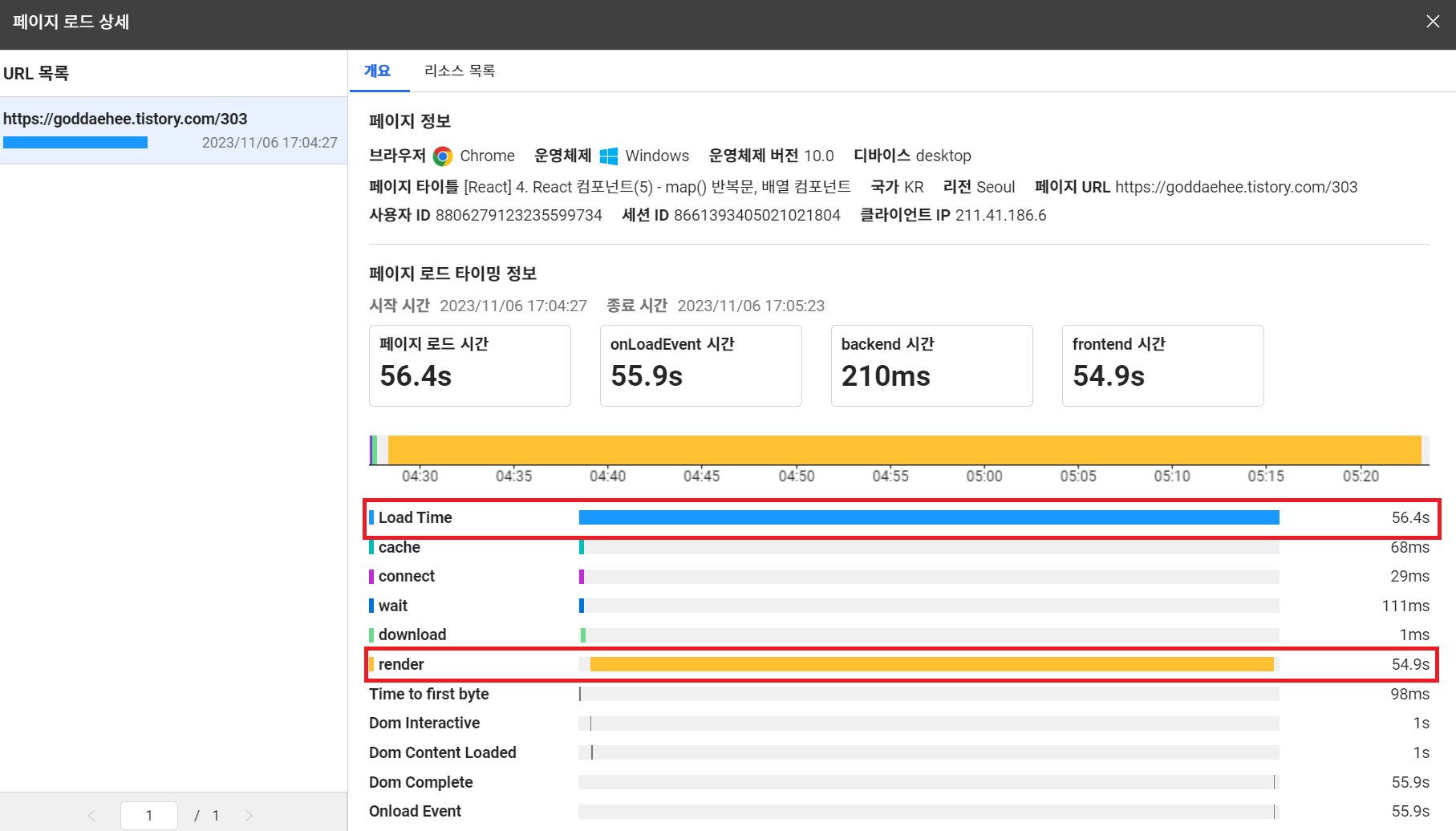 ex) render 영역에서 54.9s를 잡아 먹었다고 나타내어 주고 있다.
