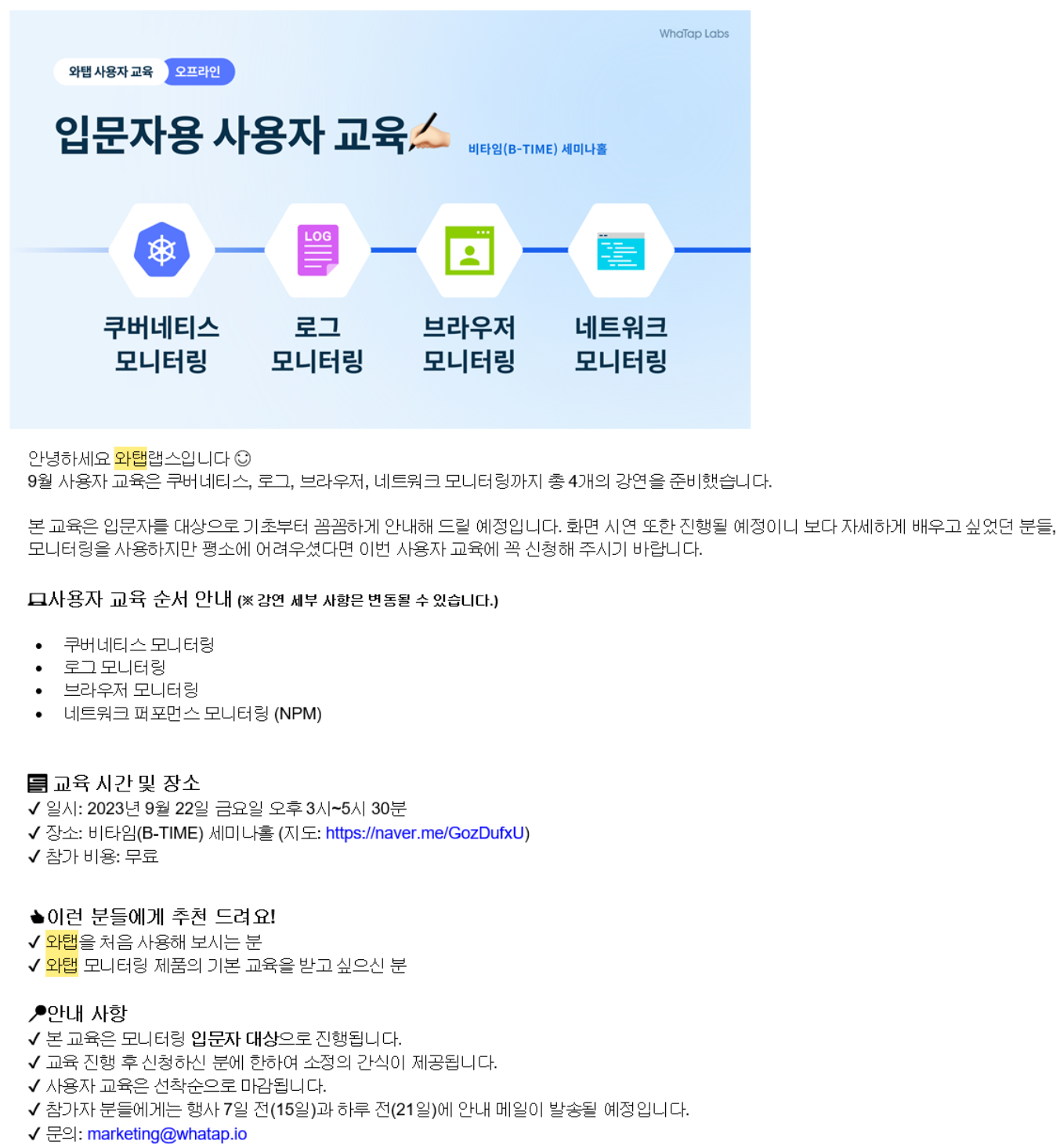 - WhaTap 교육도 다녀와 보니 젊은 개발자분들이 직접 개발과, 사용자 교육을 도맡아 하고 있었다.