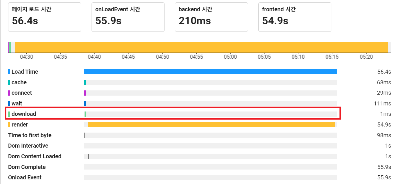 ex) 다만 이 부분을 이미지 다운로드 시간이 아닌, Render시간으로 표현한 것이 조금 의아하긴 하다.
