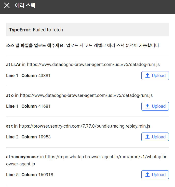 ex) 해당 케이스는 https://browser-intake-us5-datadoghq.com/api 쪽으로 fetch 요청이 실패하였다.