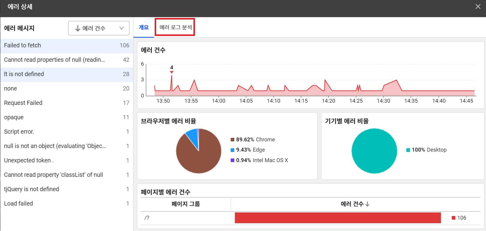 ( 이런 경우 "분석 탭의 에러 추적" 을 통해 분석 할 수 있다. 해당 분석을 이어가기 위해 미리 해당 메뉴를 살펴 보도록 하자.)