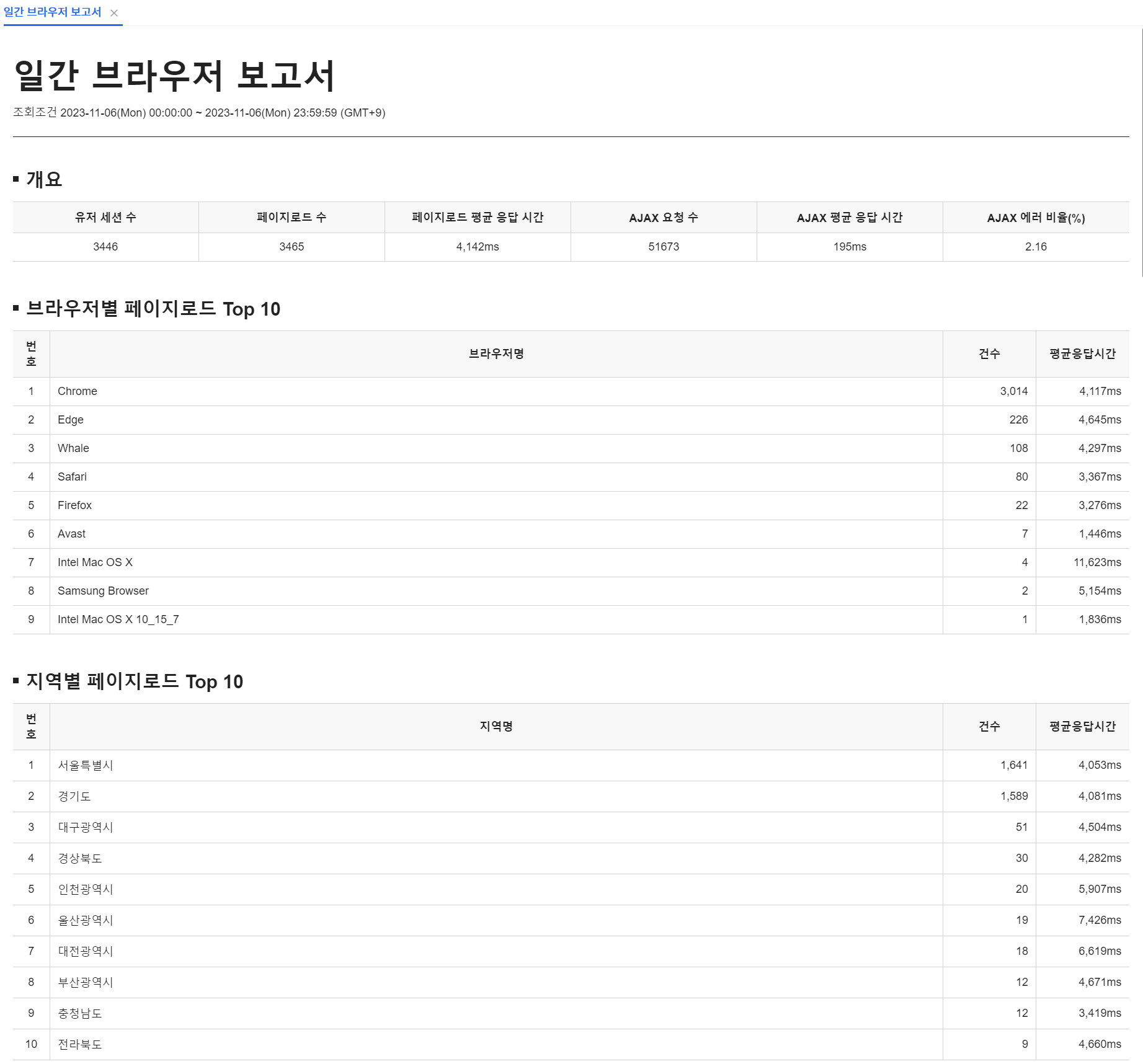 ( 호출 Count, 및 평균 데이터 테이블도 볼 수 있다.)