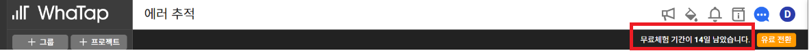 - 15일간 무료 라고 써있긴 하지만, 실제 테스트 진행 시 14일간 무료로 사용해 볼 수 있는 것으로 보니다.