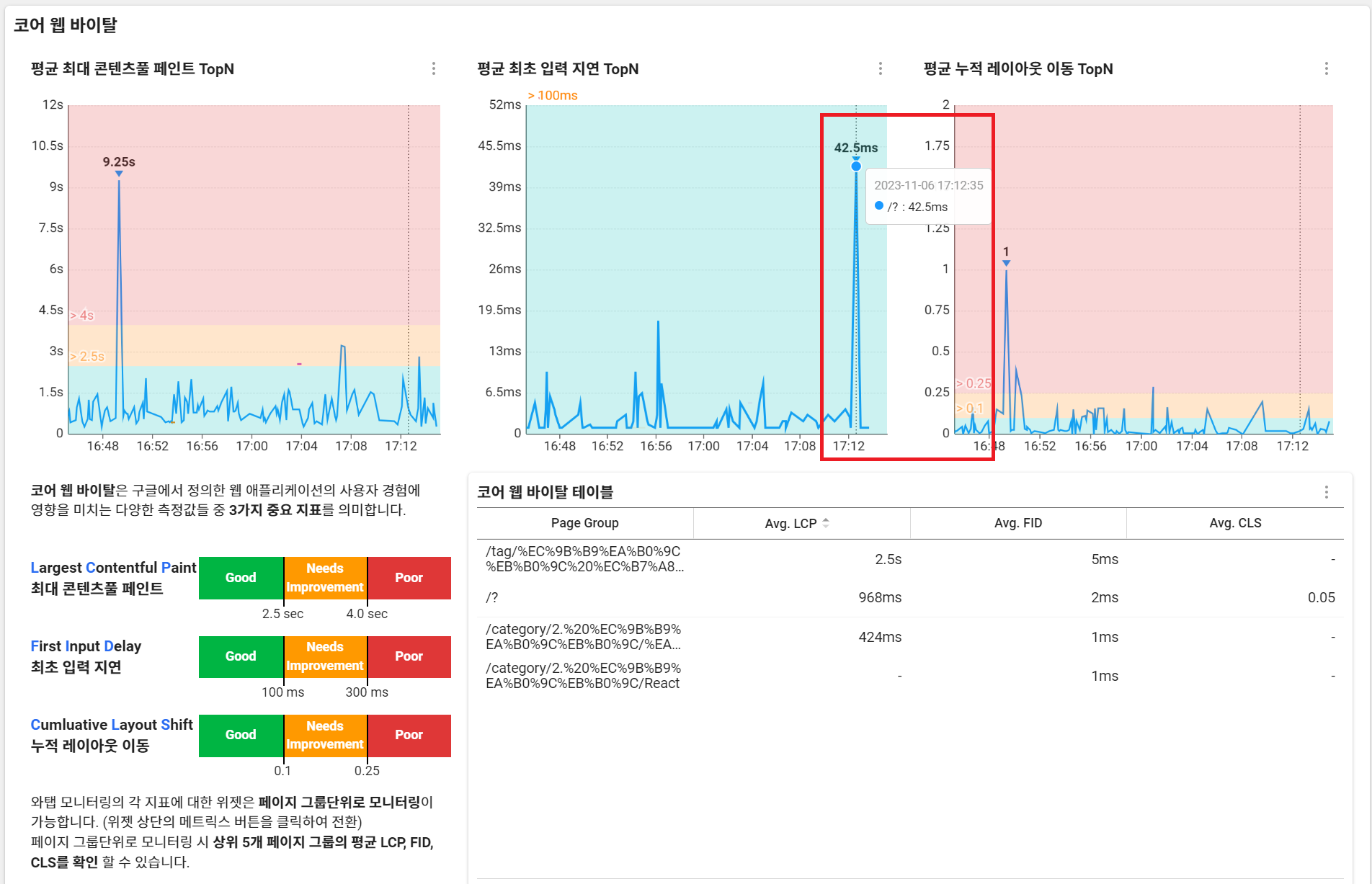 - 웹 바이탈즈에 근거한 성능관련 대시보드를 제시해 주고 있다.