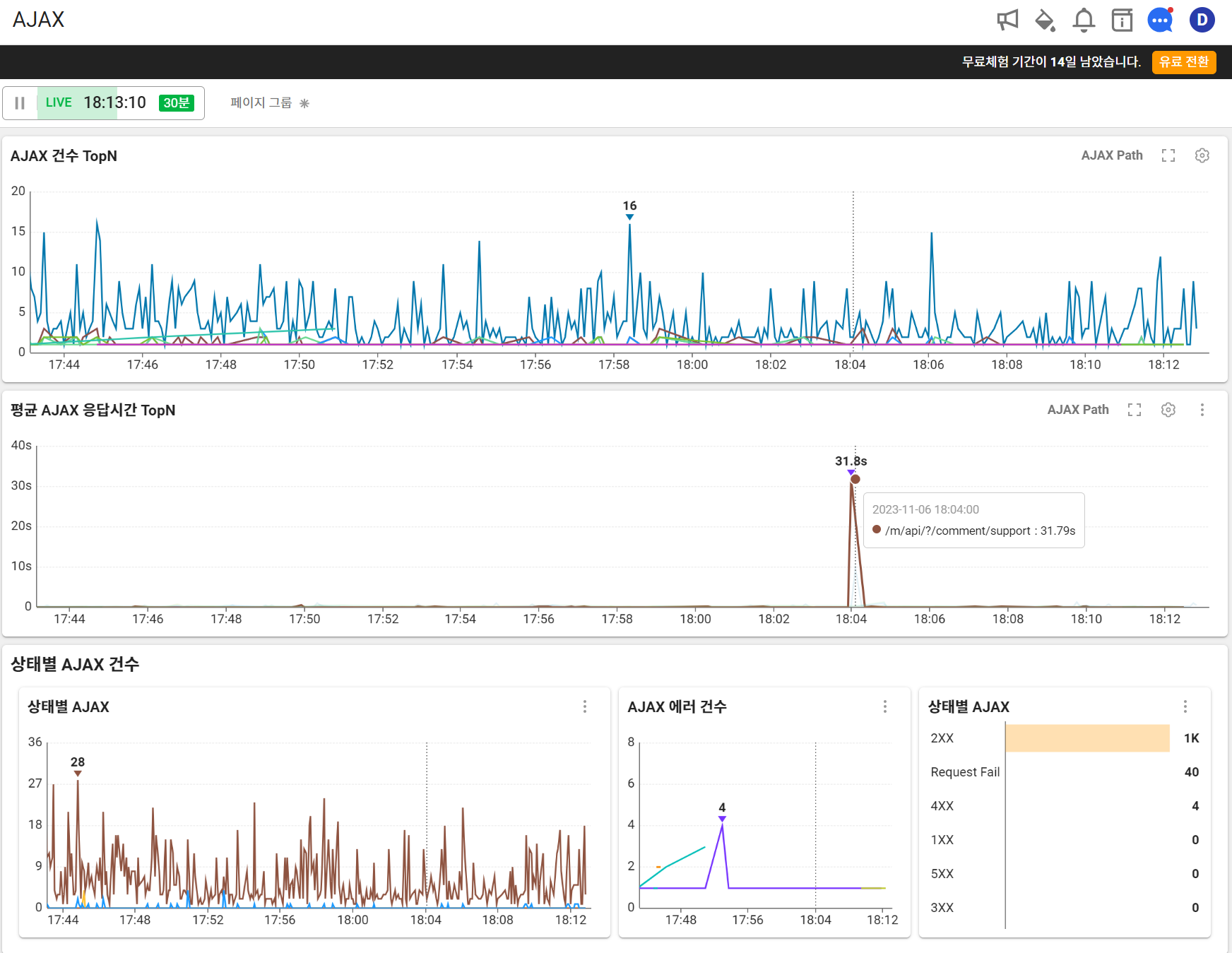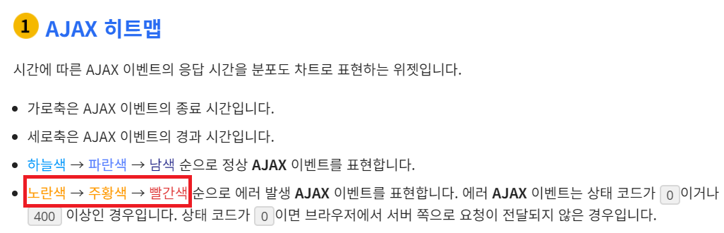 - AJAX( 비동기 자바스크립트와 XML(Asynchronous JavaScript And XML) )와 관련된 대시보드정보를 간략히 볼 수 있다.