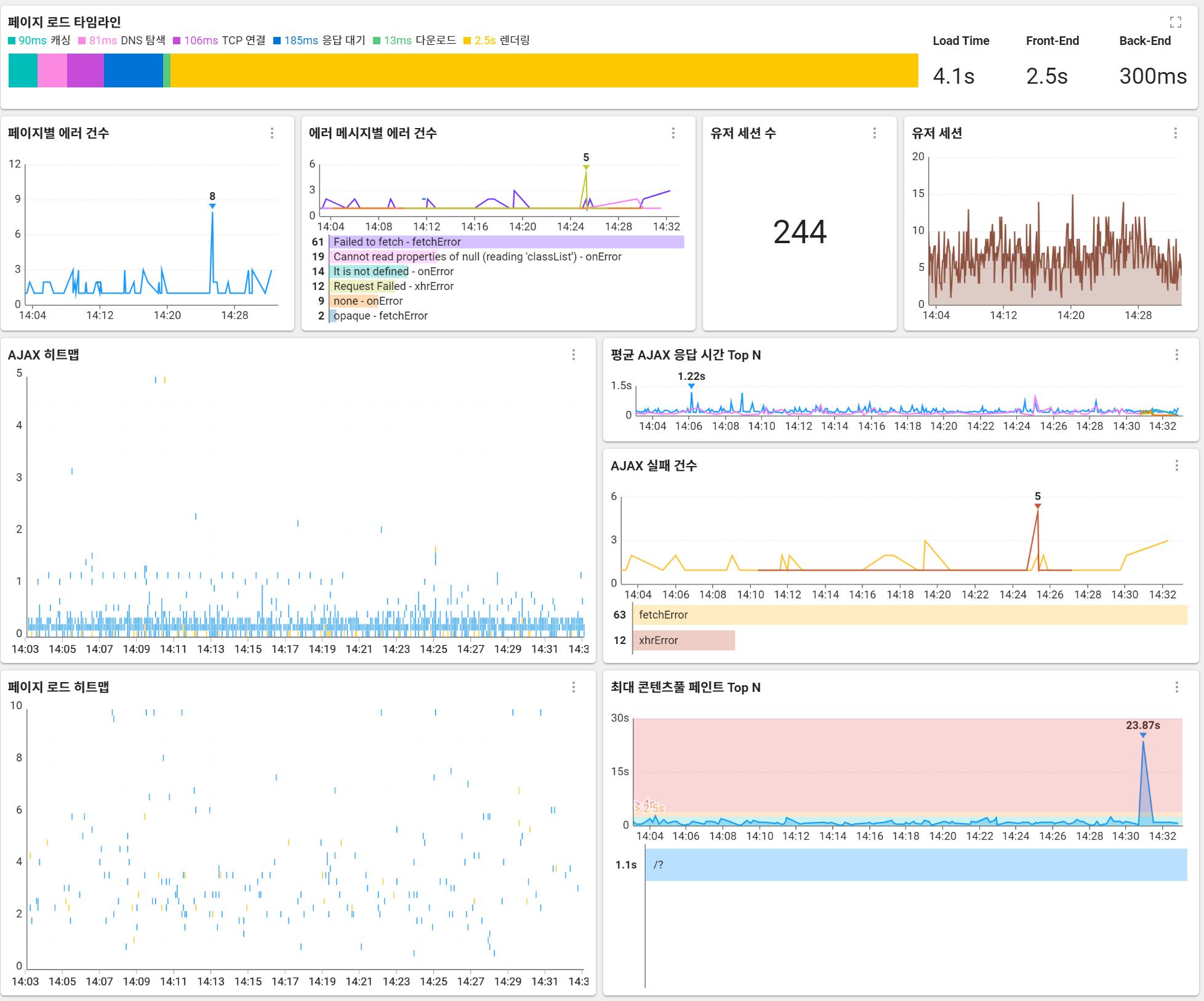 - 말 그대로 대시보드 이기 떄문에 UI를 참고 하고(특정 상세 페이지로 이동할 수 있는 링크는 따로 없어), 다른 탭을 통해 원인 또는 개선 포인트의 분석이 필요할 것 같다.