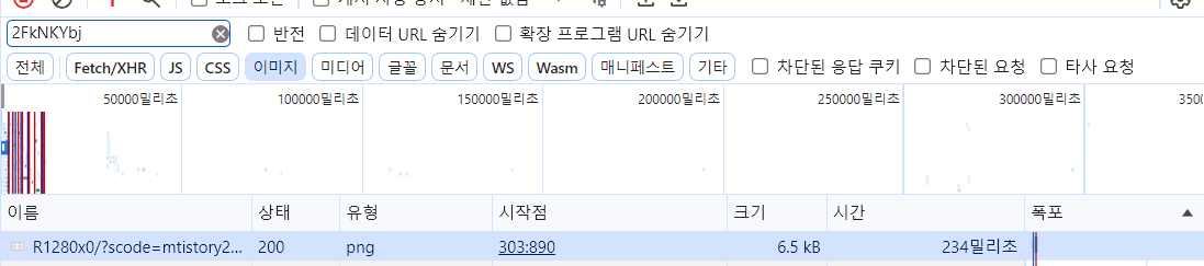 - 페이지 로드 - 리소스, AJAX 탭에서도 특별히 관련도를 찾을 순 없었다.