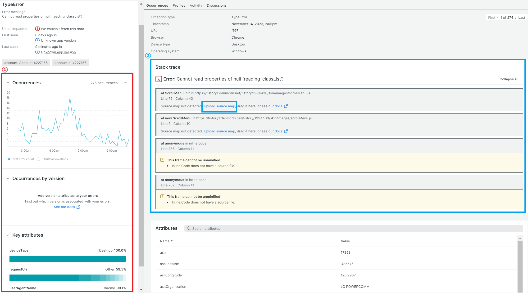② Stack Trace 정보 및 Source Map Uplaoad 기능을 제공해주고 있다.