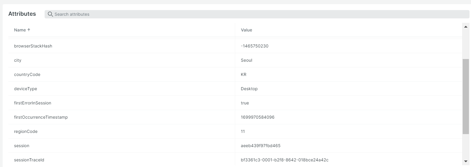 - Stack Trace 하단 영역에서는 Attributes를 보여 주고 있다.