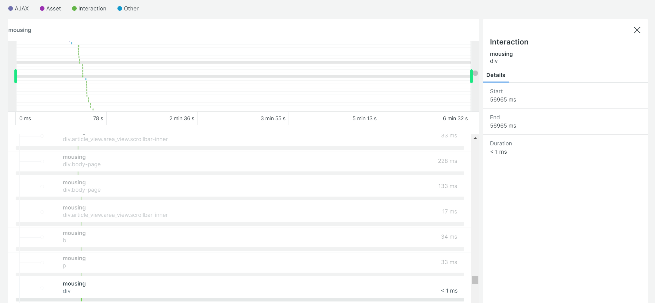 - 마우스, 스크롤링, 클릭 이벤트 등등을 수집하고 있는데, 현 시점에서는 딱히 유용하지 않지만, 이를 토대로 Session Replay로 제공 되면 유용할 것 같다.