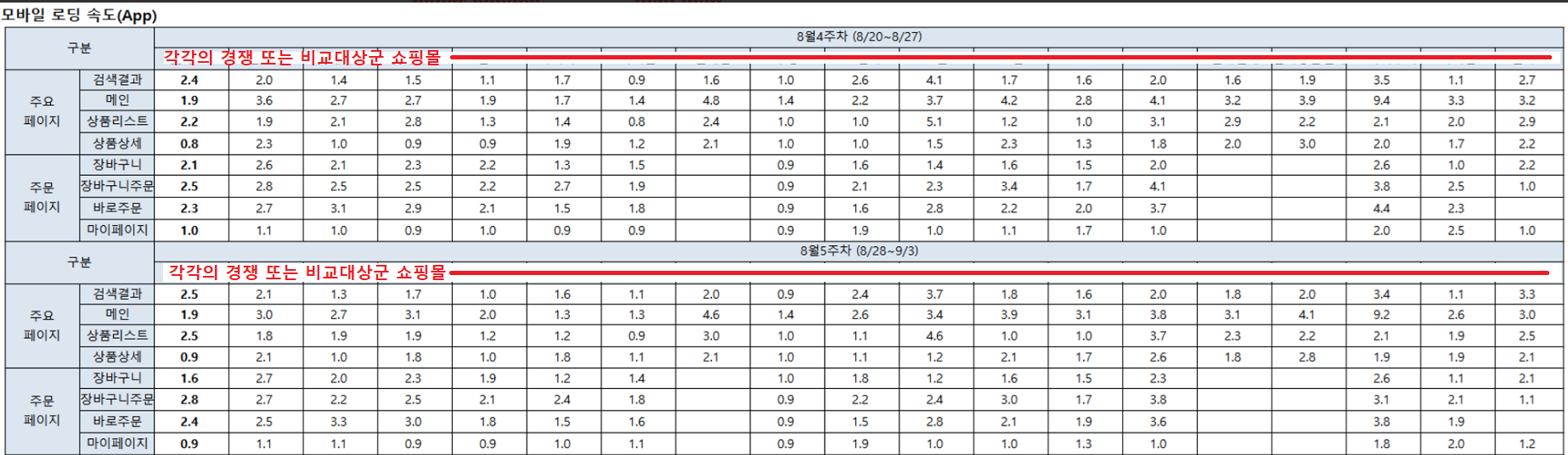 ex) 각각 쇼핑몰을 직접 담당자들이 초시계를 켜 놓고 속도 측정한 결과