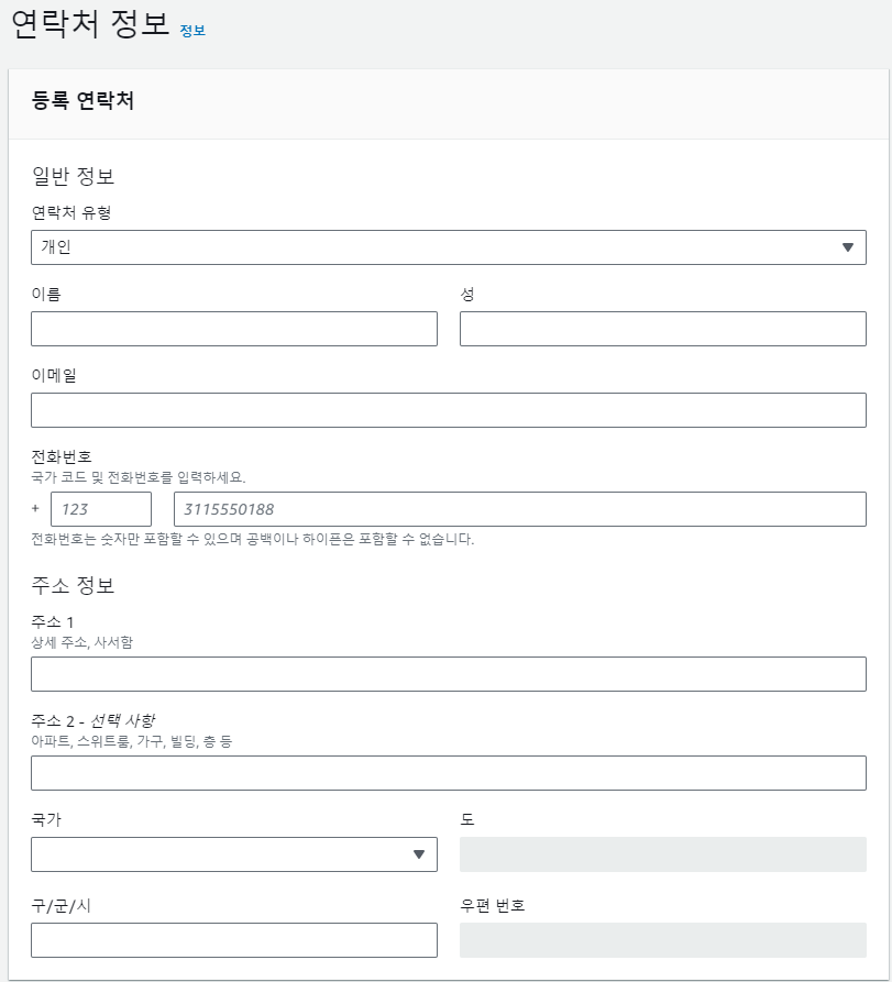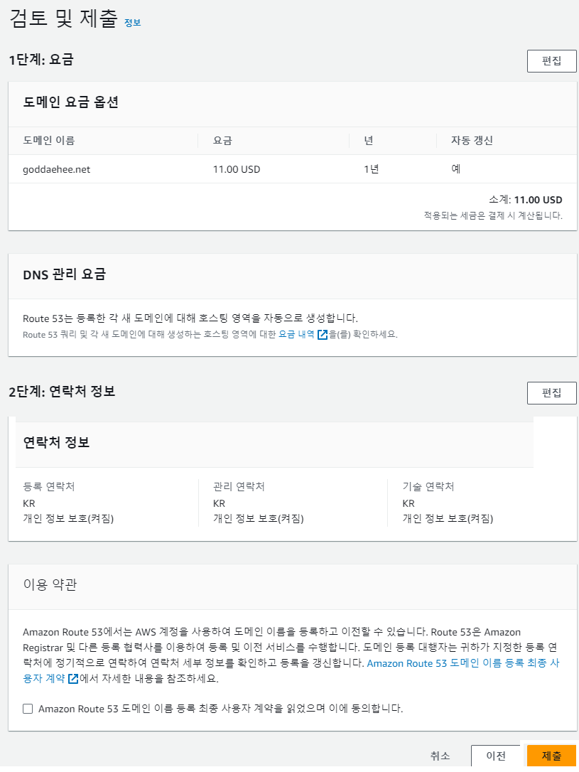 - 외부에서 구매하였던 도메인을 "도메인 이름"영역에 입력 하여 준다.