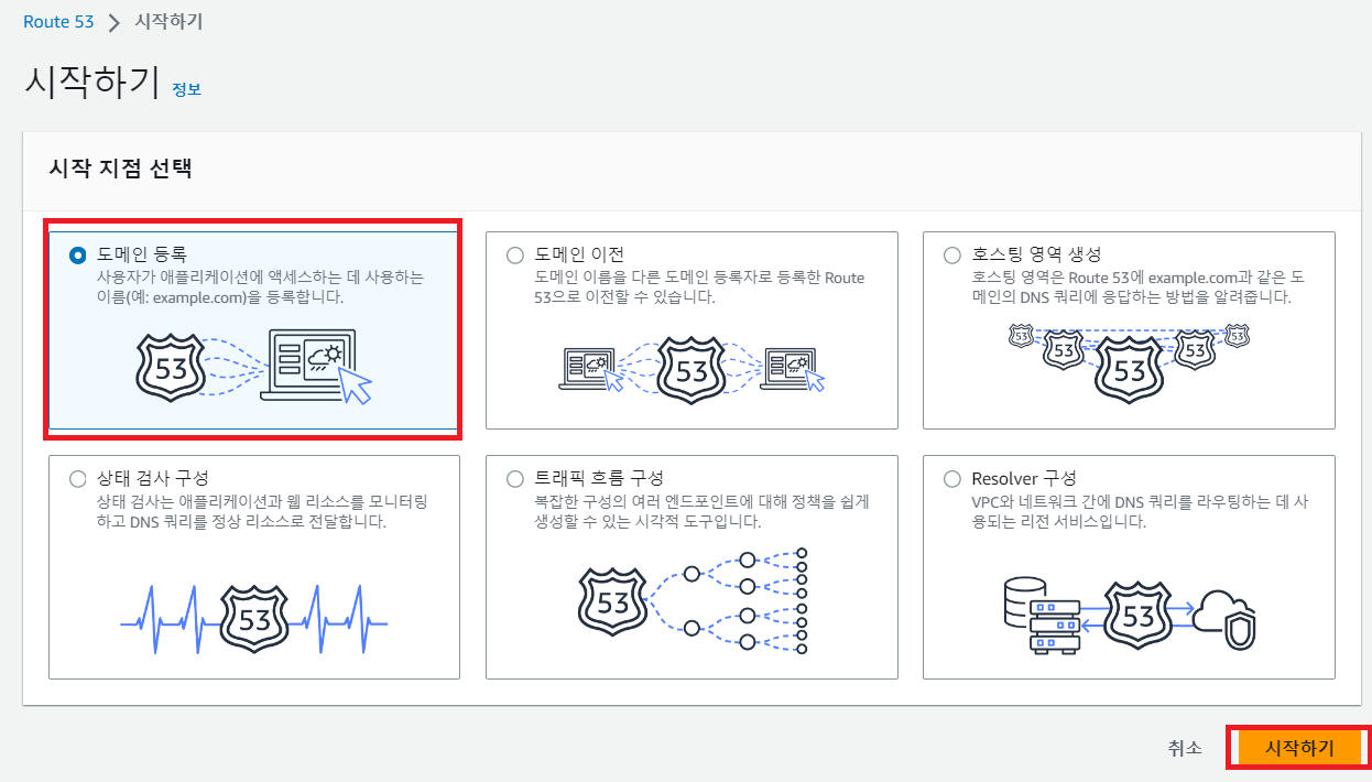 - "도메인 등록" 클릭 및 "시작하기" 클릭.
