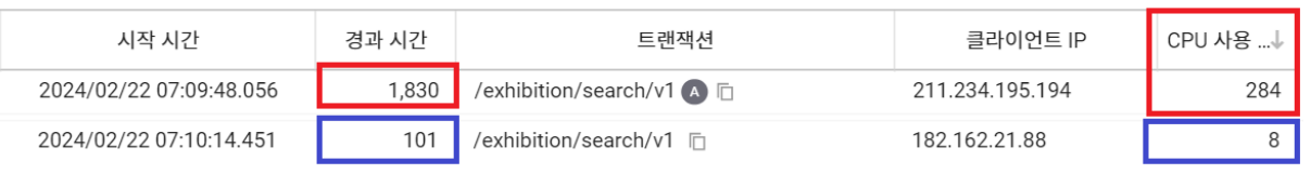 2) 호출 빈도가 높고, 응답 속도가 느리며 CPU 사용율이 높은 API