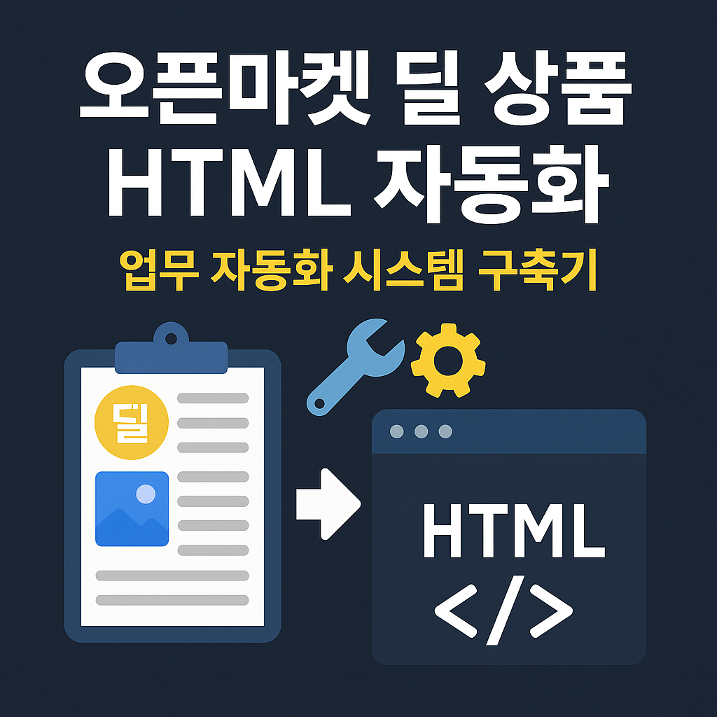 우리 회사 영업팀에서는 매주 옥션, G마켓, 11번가 등 다양한 오픈마켓 딜 기획전에 상품을 등록 한다고 한다. 하지만 단순한 등록이 아니라, 딜용 HTML 페이지 제작을 위한 전처리 작업이 많고, 자동화가 아예 되어있지 않아 공수가 많이 든다고 한다.