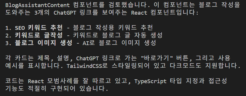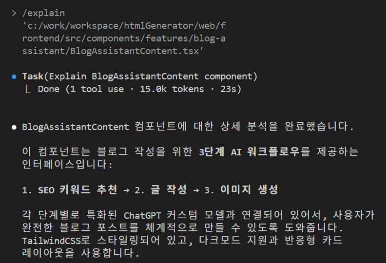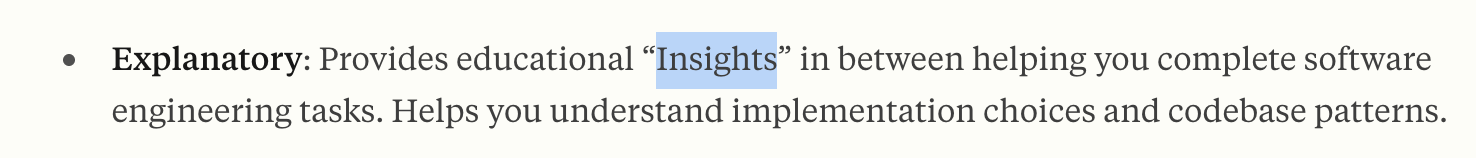 - 공식 문서의 내용 참고 : 소프트웨어 엔지니어링 작업 완료에 도움이 되는 교육적 "통찰력(Insight)"을 제공합니다. 구현 선택 사항과 코드베이스 패턴을 이해하는 데 도움이 됩니다.