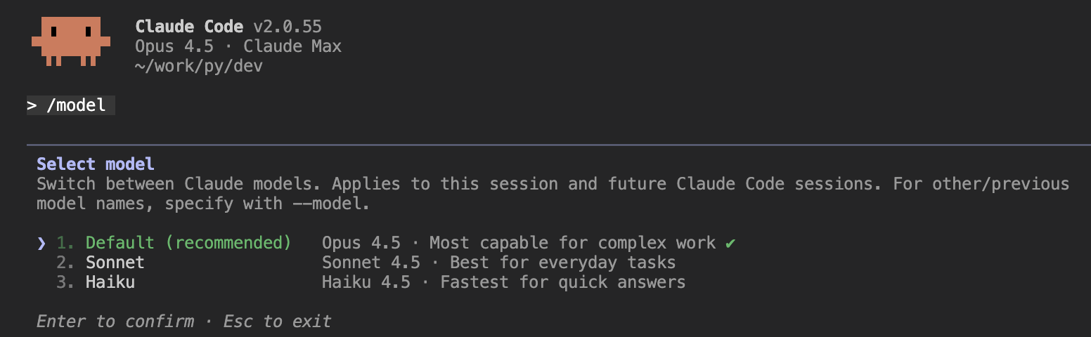 | Claude Opus 4.5 / Default (권장) | 최고 성능, 복잡한 추론 |