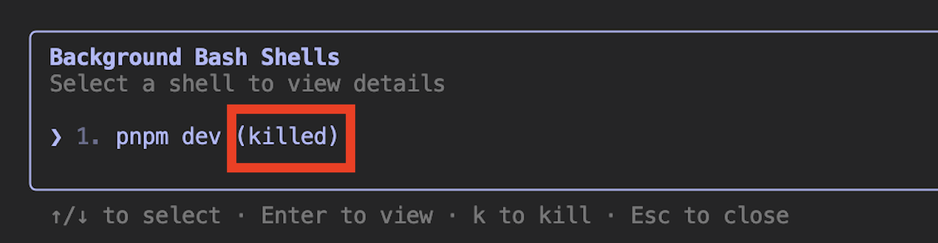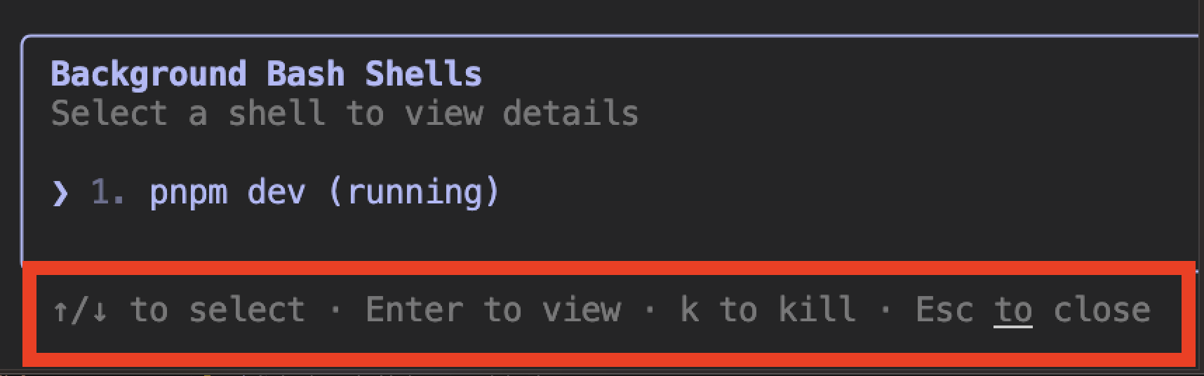> ctrl + b 입력 > 하기에 1 bash running 이라는 background 프로세스가 표현이 되며 / 화살표 모양대로 이동해보자.
