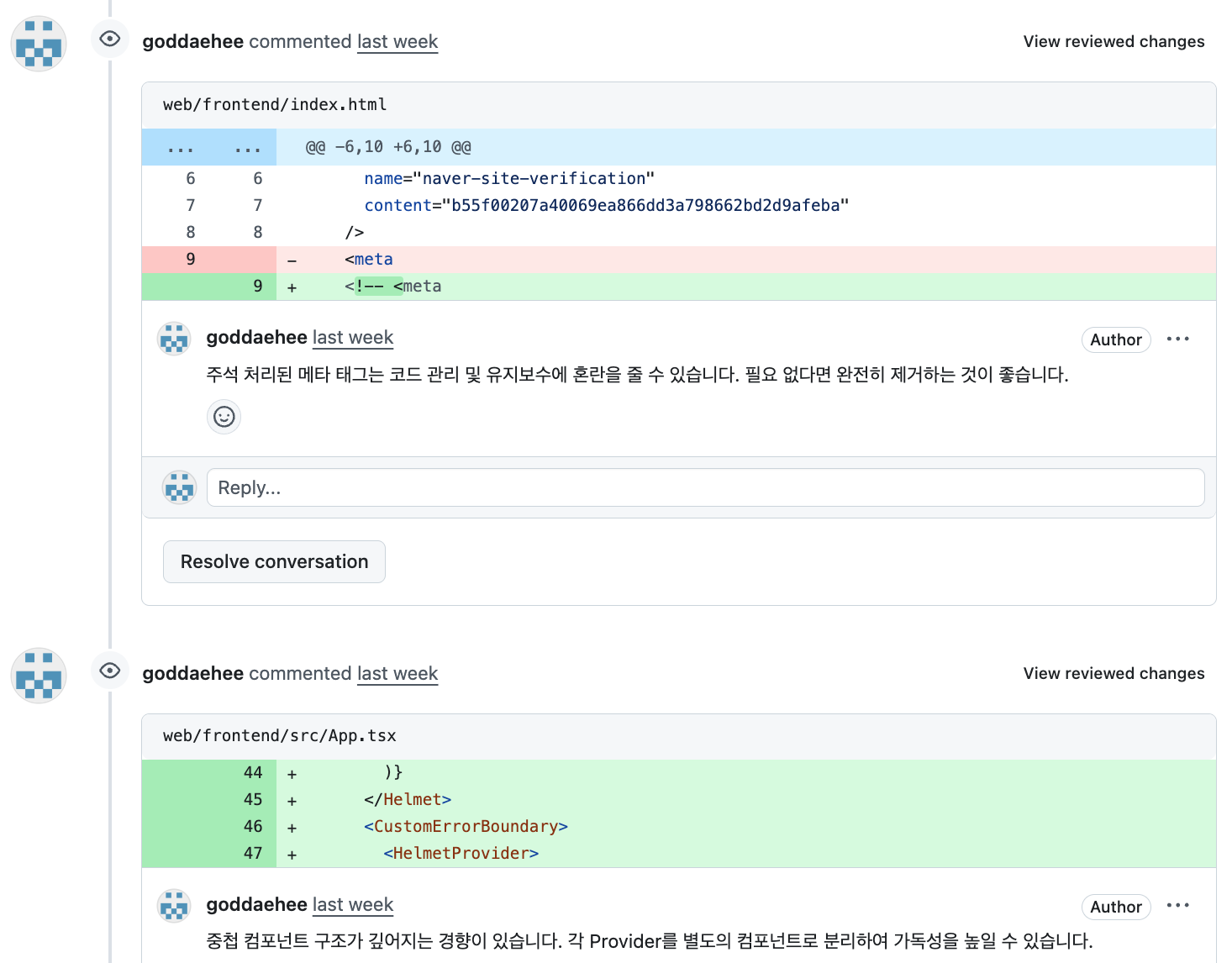 - 워크플로우 통합 : 별도 플랫폼 없이 GitHub 내에서 모든 리뷰 프로세스 가능.