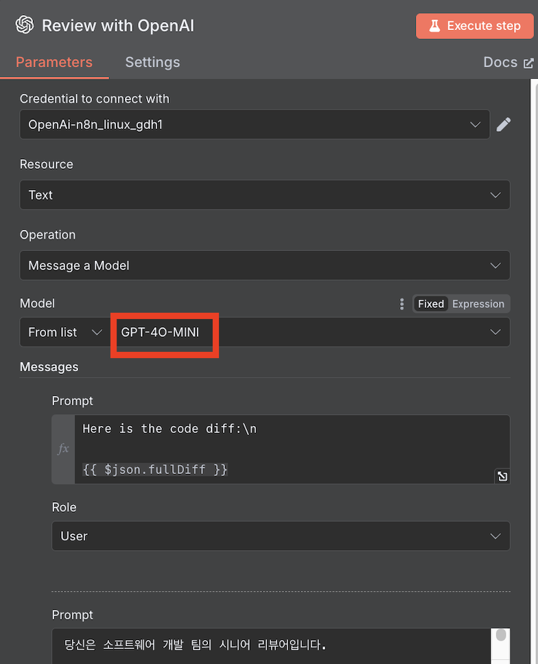 그래서 나는 n8n과 ChatGPT를 연동해서 웹훅으로 PR 리뷰를 자동화하여 사용중이다.