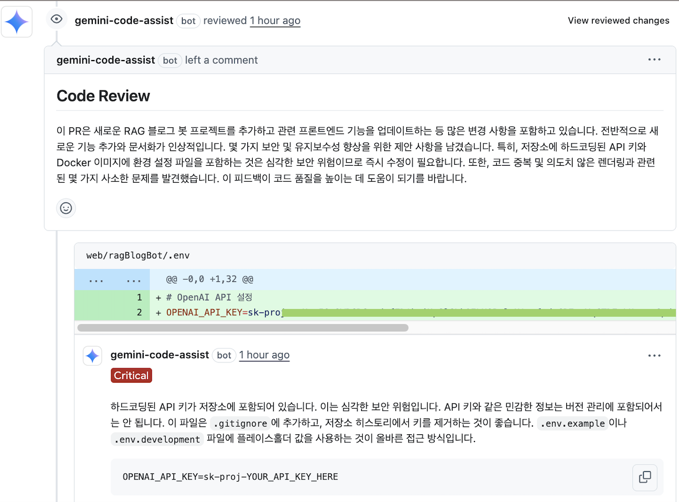 - gemini 리뷰 결과