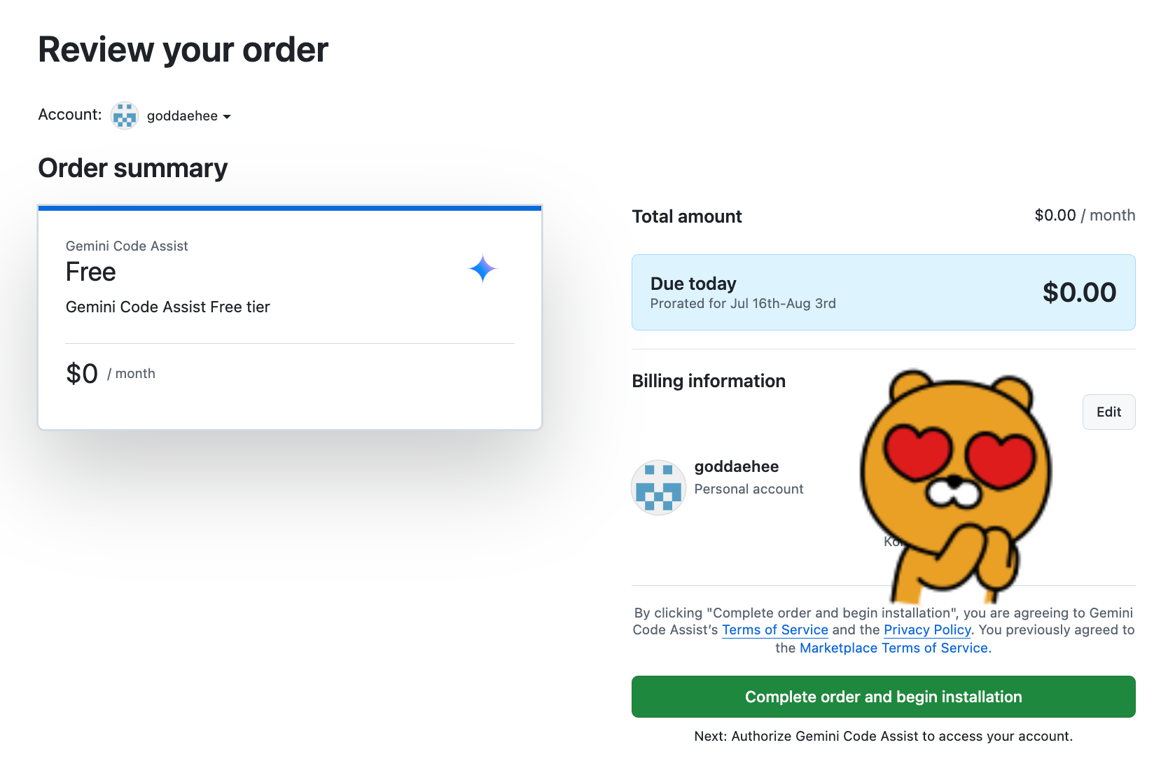 - 또는 링크 이동 : https://github.com/marketplace/gemini-code-assist
