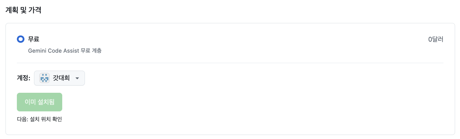 처음에 회사 Workspace 계정으로 설정하려다가 "계정이 부적격하다"는 메시지를 봤다. 무료 버전은 개인 Gmail 계정만 지원한다. 계정 타입 꼭 확인하자!