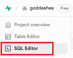 - SQL Editor (SQL 편집기): 직접 SQL 쿼리를 작성하여 데이터베이스를 조작할 수 있다. 뷰, 함수, 트리거 등 복잡한 로직을 구현할 때 주로 사용한다.