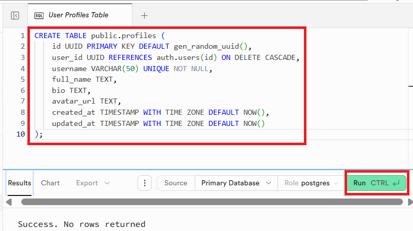 특히 user_id 컬럼은 auth.users 테이블의 id와 외래 키(Foreign Key)로 연결하여 특정 사용자의 할 일을 관리할 수 있도록 한다. ( 나는 sql Editor로 생성하지만, 한번 정도는 직접 gui로 생성해보자.)
