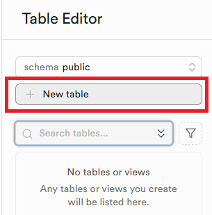 'Table Editor'로 이동하여 'New Table' 버튼을 클릭합니다.