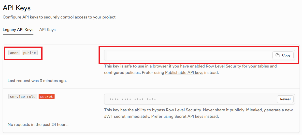 anon key는 클라이언트에서 사용하고, service_role key는 서버사이드에서만 사용해야 한다.