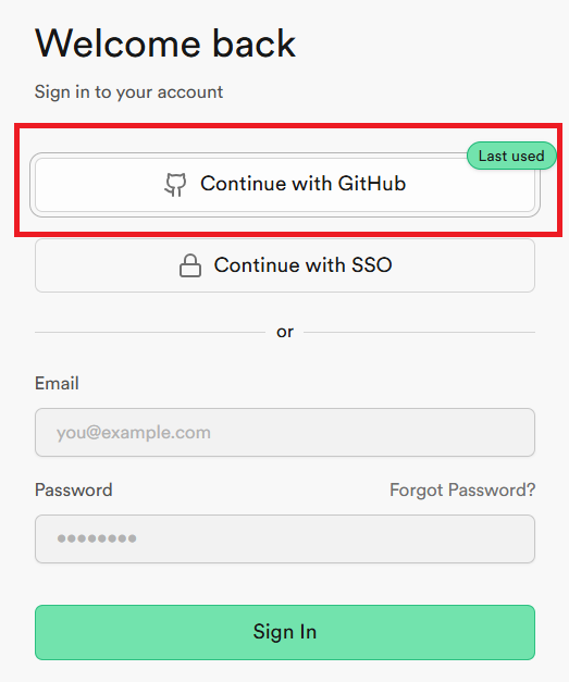 - 이메일과 비밀번호 입력 또는 GitHub/Google 소셜 로그인 선택 (난 GitHub 으로 진행)