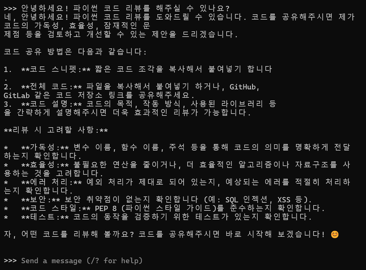 - 코딩 전용 : codellama (코드 생성과 디버깅에 특화)