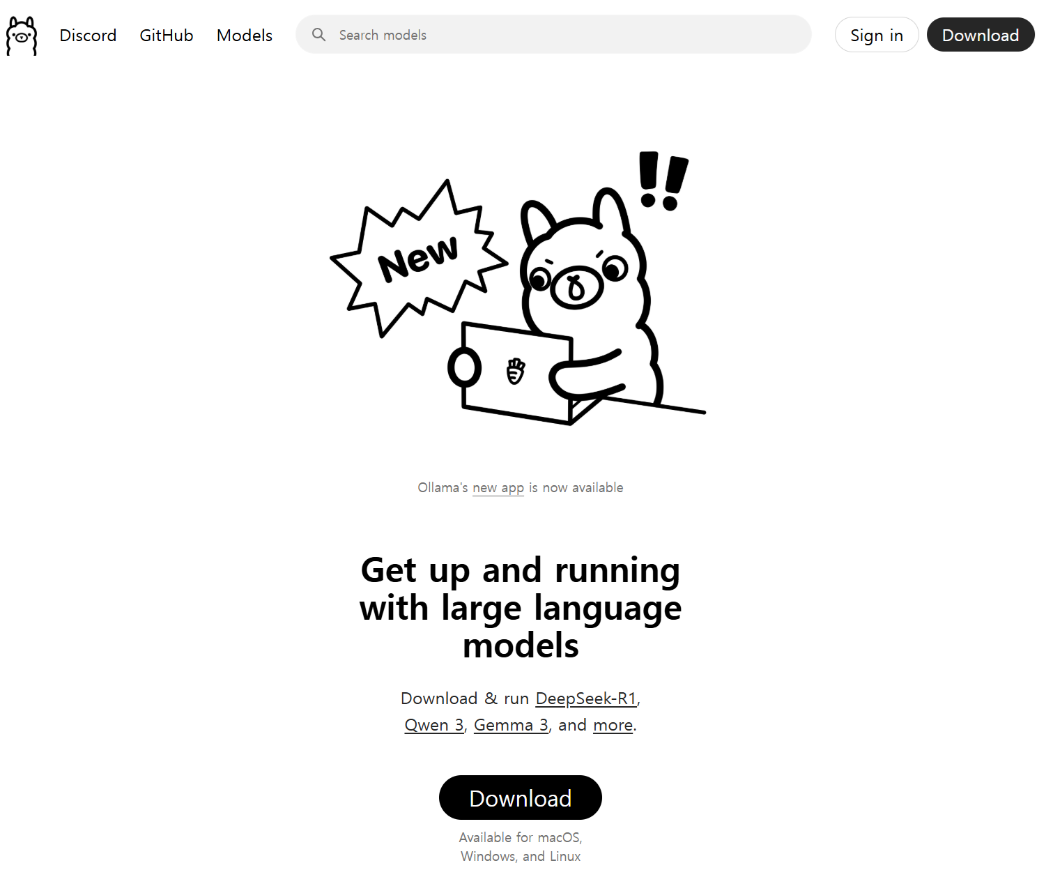 - Ollama 공식 홈페이지 - 최신 모델 다운로드