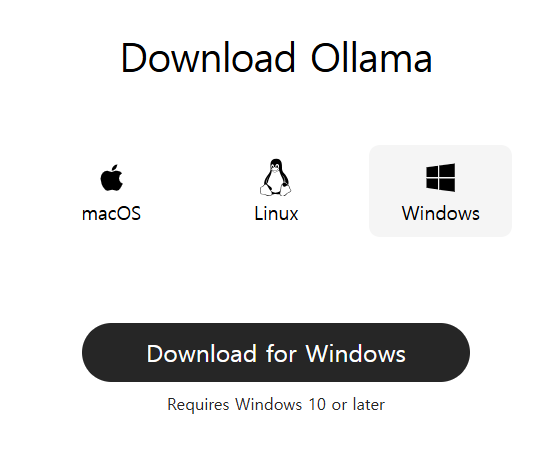 1. 공식 사이트에서 다운로드 : https://ollama.com/download
